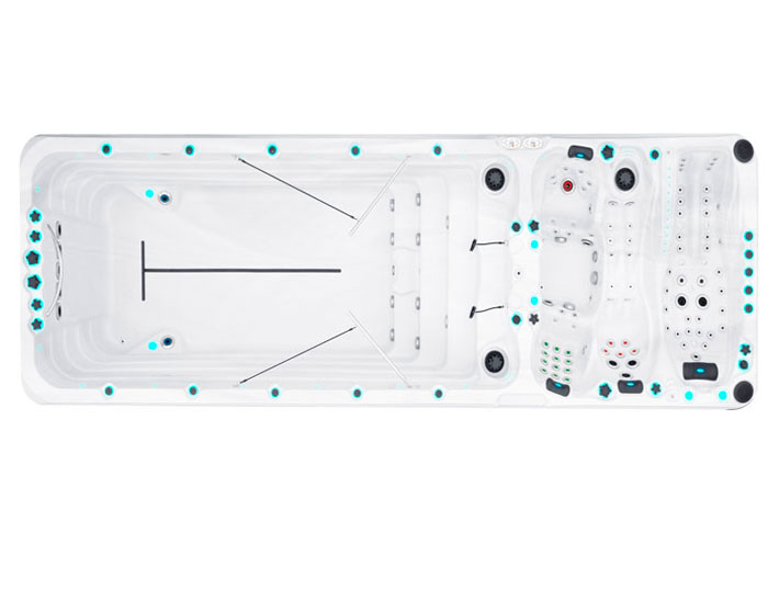 The Energy is also divided into a swim and spa section with Dual Zone Temperature. This allows you to stay cool during your workout and then sooth your tired muscles in the hot water of the spa.